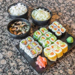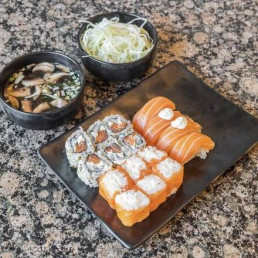 Don't miss out on their unique creations like the Spring Tempura Avocado Sweet Chili roll or the California Dream plate, which combines different types of California rolls with miso soup, cabbage salad, and rice for a satisfying meal.